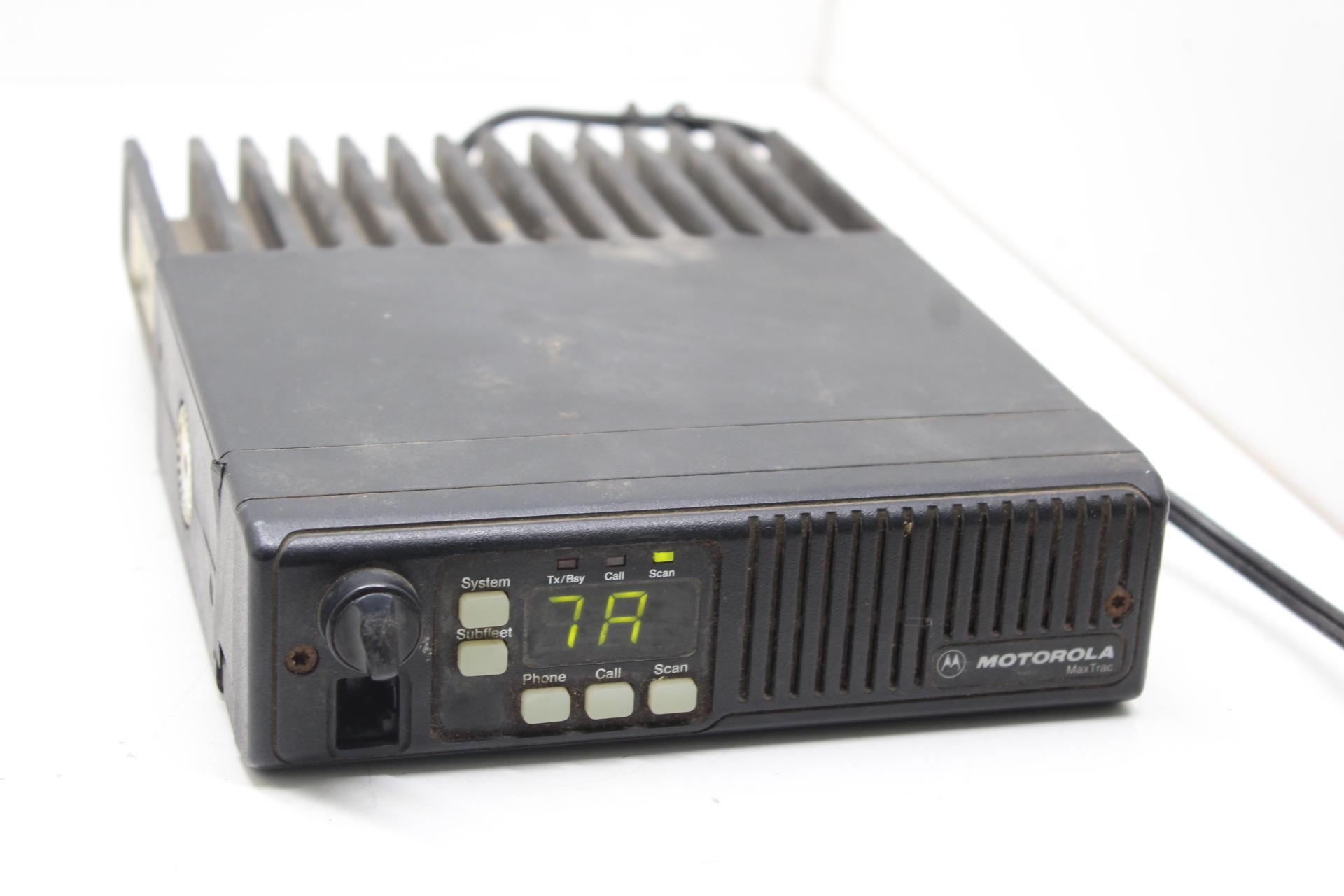 Radio powers on. Display and buttons appear working. We cannot test proper or full functionality without a handset or antenna. Sold AS-IS!