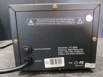 $12,55Seyas convertisseur de voltage VT-2000 in 110-120 out 220-240 max 2000 watts